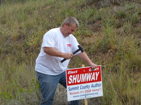 Last Friday was one hectic day which culminated with the NSHS Homecoming Parade and football game. Saturday we drove around the county and posted more signs. Came home and made up some double sided signs. Sunday took a break and relaxed while doctoring up our brochure and printing documents for the next few weeks of campaigning. According to my calendar, only 51 more days until election day (much less if you count early and absentee voting).